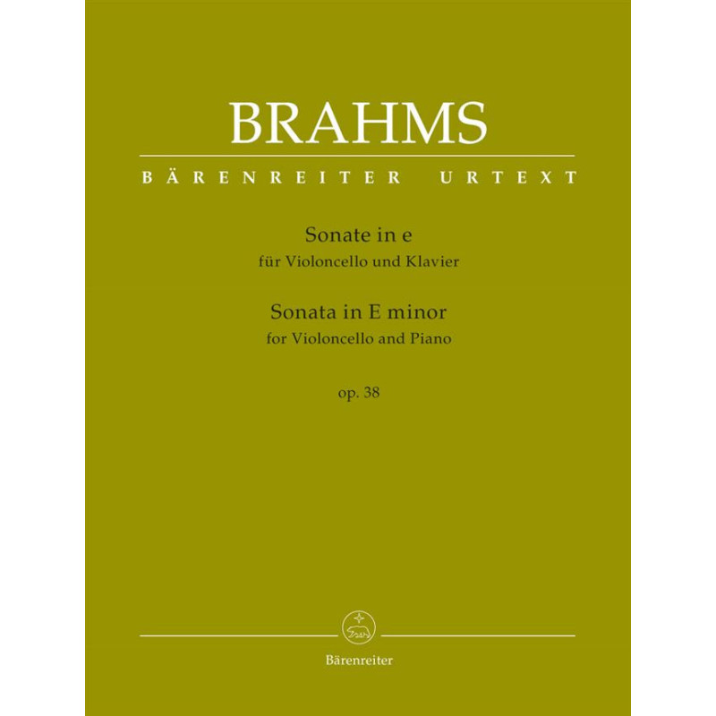 Les trois premières éditions de performance de la Sonate pour violoncelle op. 38 par Cornelius van Vliet et Edwin Hughes, Hugo Becker et Carl Friedberg, ainsi que Julius Klengel. Le doigté et la révérence des violoncellistes van Vliet, Becker et Klengel permettent une meilleure compréhension de leur pratique de la performance. En tant que telle, l'édition Bärenreiter est livrée avec une partie de violoncelle marquée par le doigté et l'archet par les éditeurs qui sont basés sur les pratiques des contemporains de Brahms. Nous fournissons également une partie urtext non marquée.
