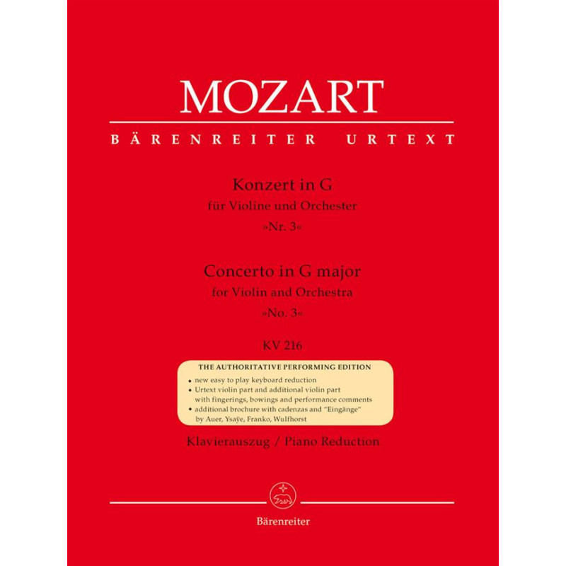 La réduction pour piano du Concerto pour violon en sol majeur de Mozart est plus facile à jouer, épurée et pratique avec des pages tournées là où vous en avez besoin et des pages dépliantes si nécessaire.