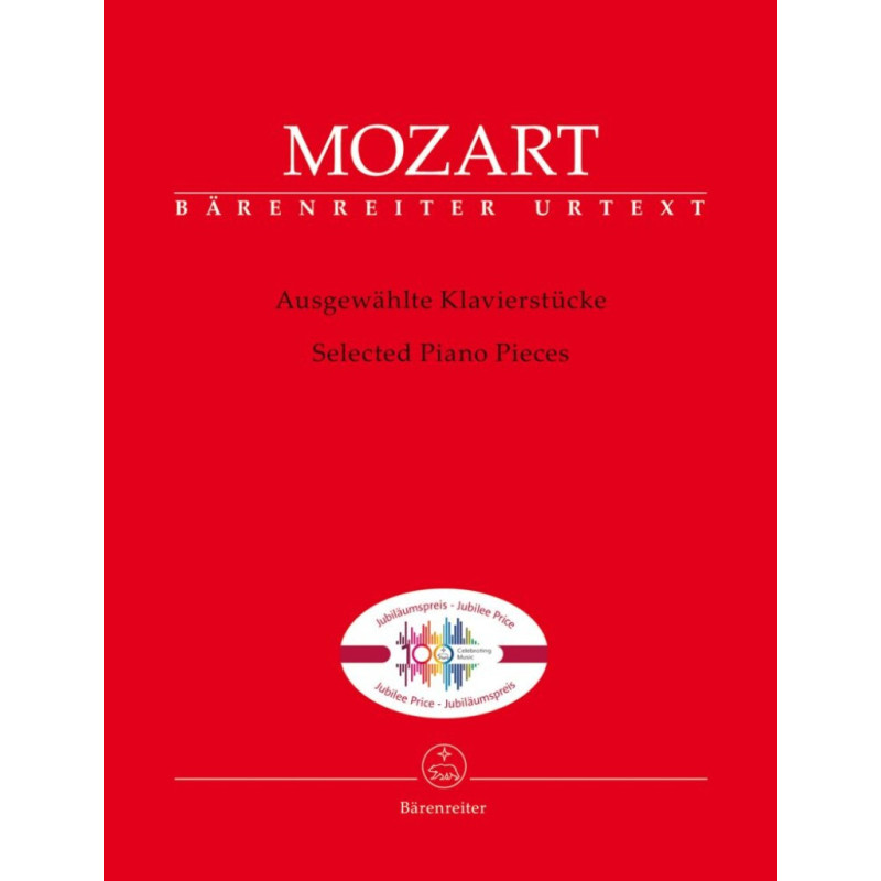 Bärenreiter est étroitement lié à Mozart. Les uvres complètes de l'ingénieux compositeur ont été publiées dans la référence « Nouvelle édition Mozart » publiée par Bärenreiter. De plus, la grande majorité des compositions sont disponibles dans les éditions Urtext performantes basées sur le texte musical de la « Nouvelle édition Mozart ». Il ny a pratiquement aucun domaine musical dans lequel Mozart na pas excellé au cours de sa courte vie, et cela vaut également pour la musique pour piano. Ses concertos, sonates, uvres à quatre mains ainsi que de nombreuses pièces individuelles font partie du répertoire standard. Ce recueil se tourne vers le jeune compositeur avec trois petites pièces tirées des « Livres musicaux de Mozart et de sa sur » (BA09177). La Fantaisie en ré mineur K. 397 (probablement achevée par August Eberhard Müller) et la Gigue en sol majeur K. 574 du volume « uvres diverses pour piano » (BA05745) mettent en valeur le compositeur mature. L'édition fait partie d'une série d'ouvrages populaires du catalogue Bärenreiter pour le 100e anniversaire de la maison d'édition.