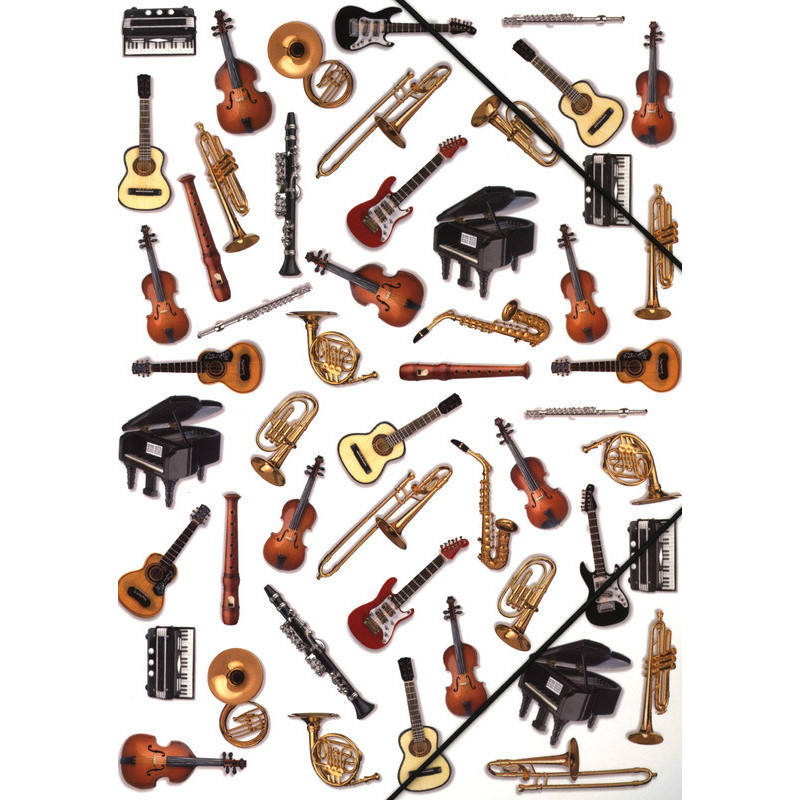 Gardez vos partitions et notes de répétition en sécurité dans ce dossier A4 accrocheur de Vienna World. Ce dossier en plastique utile contient des images en couleur d'une multitude d'instruments de musique différents. Le dossier est maintenu fermé avec des attaches élastiques noires. Un excellent cadeau pratique pour tout musicien.
