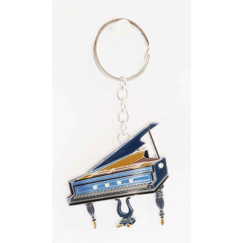 Un porte-clés en métal pour piano à queue, décoré en bleu et avec 5 cristaux décoratifs. C'est un beau cadeau pour tout pianiste, musicien ou toute personne qui aime la musique.