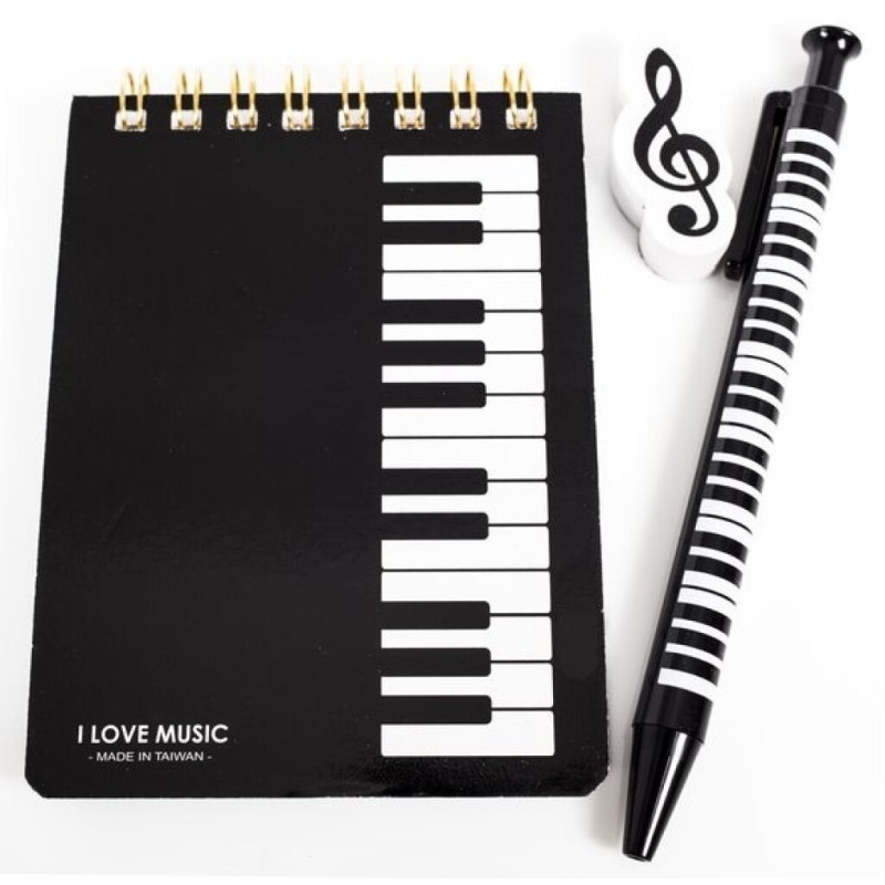 Ce kit de papeterie design petit clavier contient un carnet, un crayon pochette et une gomme.