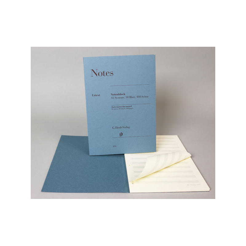 Bloc-notes de musique manuscrite, 12 portées, 50 feuilles, 100 pages, A4. Bloc déchirable de luxe avec support ferme pour une écriture facile. Perforatrice 4 trous.