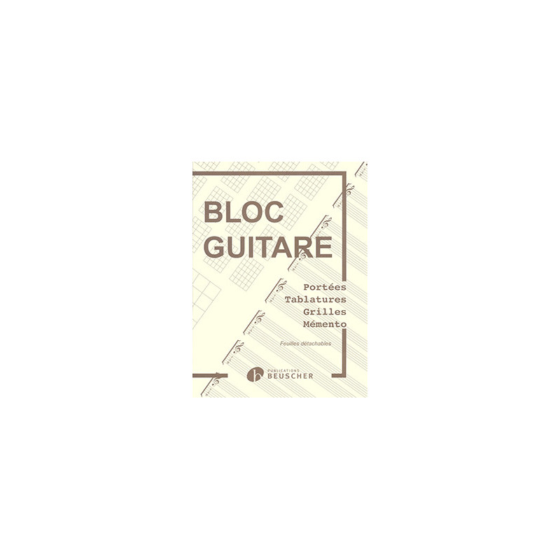 Bloc Guitare avec portées, Tablatures, Diagrammes, Mémento