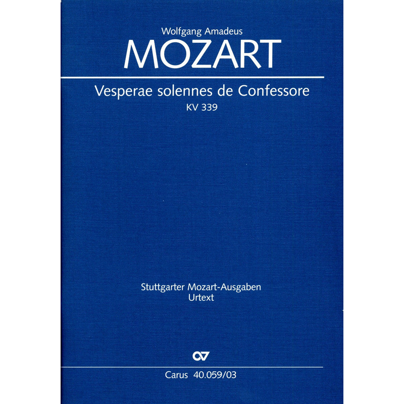 La présente nouvelle édition critique des "Vesperae solennes de Confessore" KV 339 de Wolfgang Amadeus Mozart est basée pour la première fois depuis l'apparition de l'uvre dans le "Alte Gesamtausgabe" de 1880 sur la partition autographe de Mozart, qui fut longtemps considérée comme perdue les années de la Seconde Guerre mondiale, mais est à nouveau accessible à la Biblioteka Jagiellónska de Cracovie.