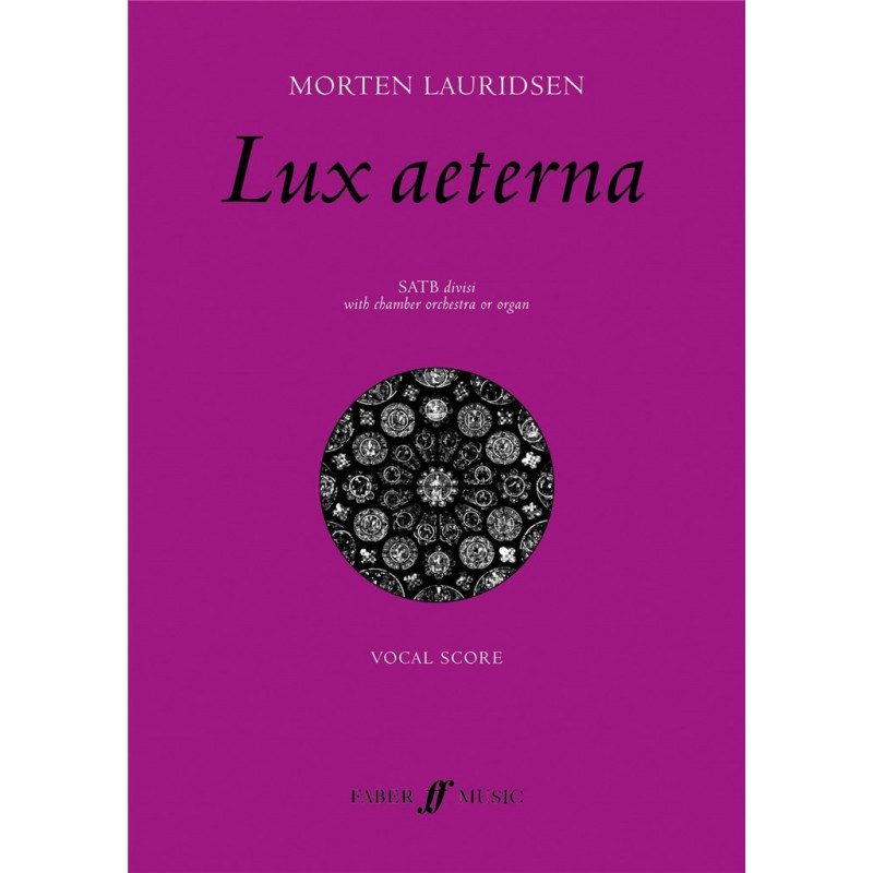 La mise en musique de Lux Aeterna par Morten Lauridsen , un requiem non liturgique en cinq mouvements pour chur et orchestre de chambre/orgue, est une uvre riche et intensément émouvante. Les textures chorales sont pleinement explorées, depuis le déploiement sonore et lent de l' Introitus et le contrepoint complexe et les voix jumelées de In Te, Domine, Speravi , jusqu'au motet cappella O Nata Lux et au cantique fougueux Veni, Sancte Spiritus . Le dernier mouvement, un sublime Agnus Dei précédant le Lux Aeterna final , se termine par un joyeux Alleluia pour fournir une conclusion édifiante à cette uvre des plus puissantes.