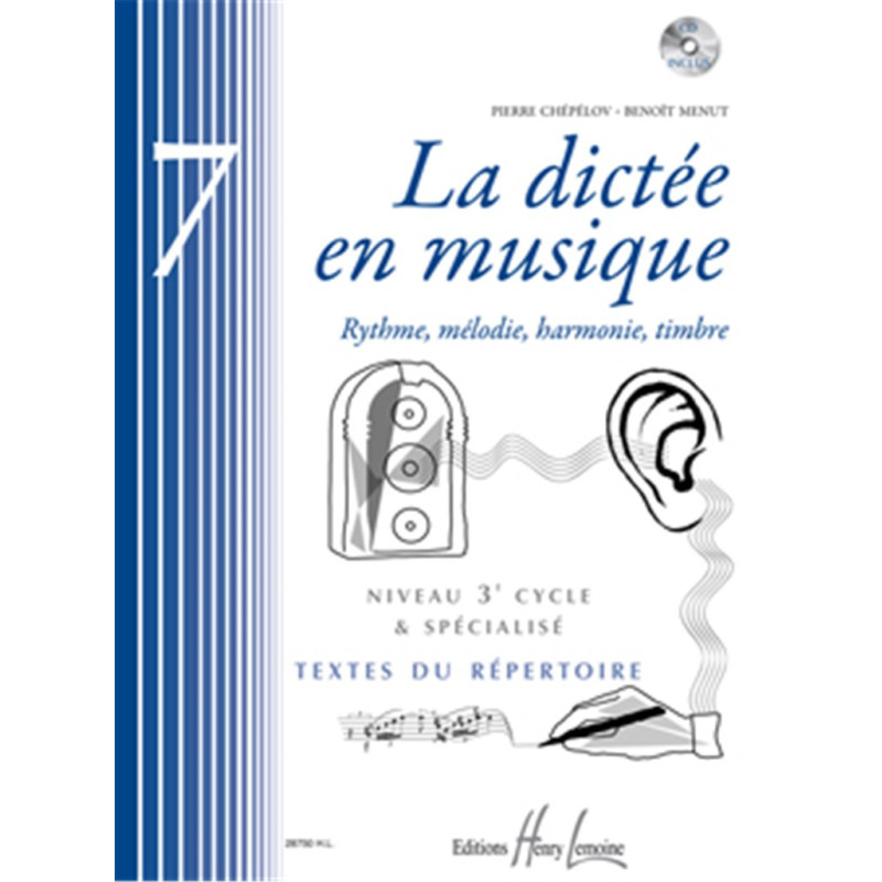 La dictée reste incontournable dans la formation de l'oreille du musicien. Cet ouvrage propose des dictées tirées d'un large répertoire allant du Moyen-Age à la musique d'aujourd'hui, utilisant des enregistrements de qualité. Sa division en six chapitres permet de développer l'écoute sous des angles différents - chaque chapitre possédant sa propre progression.