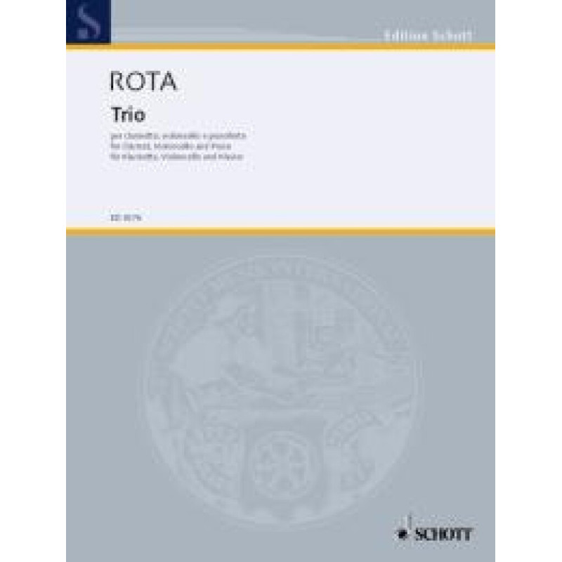Cette édition représente une édition corrigée du Trio pour clarinette de Nino Rota.L'éditeur Jürg Hanselmann a utilisé des sources telles que le manuscrit de la Fondazione Cini à Venise pour corriger des erreurs dans des publications antérieures. De plus, il y a des passages douteux où le compositeur peut avoir fait des erreurs - ceux-ci sont discutés dans l'édition et des corrections suggérées sont fournies. Le trio vient d'une année chargée pour Rota, au cours de laquelle sa musique de film pour Le Parrain a été nominée pour un Oscar, mais a ensuite été retirée de la liste pour être prétendument trop similaire à une de ses uvres antérieures. Toujours en 1973, le compositeur a dû faire face à plusieurs procès et allégations de plagiat, tous remportés par Rota.