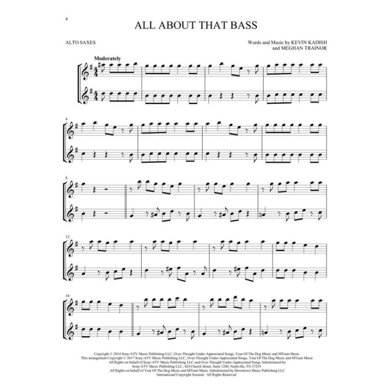 22 méga hits dans des arrangements de duo faciles pour deux instrumentistes sont présentés dans cette collection: All About That Bass - Brave - Can't Stop the Feeling - Grenade - Hey, Soul Sister - I Will Wait - Poker Face - Say Something - Shake It Off - Shape of You - Story of My Life - et plus encore. Les arrangements fonctionnent pour deux sax alto ou peuvent être utilisés avec les autres titres de bois de cette série.