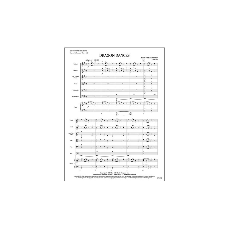 Cette uvre de style extrême-oriental deviendra certainement un best-seller cette année !Une figure ostinato est présentée dans les violons avant que les voix basses n'introduisent la mélodie.Une section pizzicato donne à l'uvre un son unique et authentique.Considérez fortement ce travail pour votre prochaine représentation.