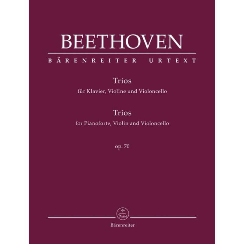 Les deux trios pour piano op. 70 ont été écrits lors de la visite du compositeur à sa mécène Marie von Erdödy. Publiées en 1809, elles comptent aujourd'hui parmi les uvres les plus célèbres de Beethoven dans ce genre, notamment le « Trio fantôme » op. 70 n° 1, dont le nom a une signification peu claire et fait peut-être référence au caractère du deuxième mouvement. Pour cette nouvelle édition Urtext, l'éditeur Jonathan Del Mar disposait pour la première fois d'une autre source pertinente, à savoir un ensemble de parties réalisées pour l'archiduc Rudolf avec des corrections de Beethoven. En évaluant méticuleusement toutes les sources, les divergences dans les éditions précédentes ont été résolues et le troisième mouvement du Trio n° 2 est ainsi reproduit dans sa structure originale en cinq parties.