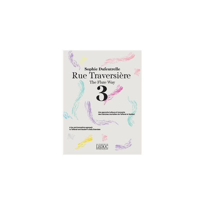 "Rue Traversière 3", nouvelles clés pour Taffanel et Gaubert et autres propositions... est une "boite à outils" pour les flûtistes d'aujourd'hui qui continuent de jouer et de travailler cet ouvrage de base. Les propositions faites autour des "17 Exercices Journaliers de Mécanisme" concernent le son, la respiration, le phrasé, les coups de langue, et bien sûr le mécanisme présent dans le titre d'origine. Préface par Juliette Hurel.