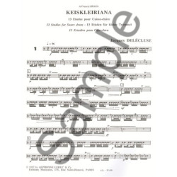 Avec très peu d'études existantes pour la caisse claire, Keiskleiriana 1 comble un très grand vide. Dérivées de parties de caisse claire orchestrales, ces études Delécluse ont été développées pour couvrir des aspects tels que les difficultés techniques et rythmiques. Keiskleiriana 1 est compilé par Jacques Delécluse, percussionniste et compositeur français. Depuis de nombreuses années, Delécluse est soliste à l'Orchestre de Paris et plus récemment, a fondé un ensemble d'instruments à clavier et percussions qui porte son nom. En tant que percussionniste expérimenté lui-même et avec une expérience inestimable, Keisleiriana 1 pour caisse claire de Delécluse est bien informé et essentiel pour les aspirants percussionnistes.