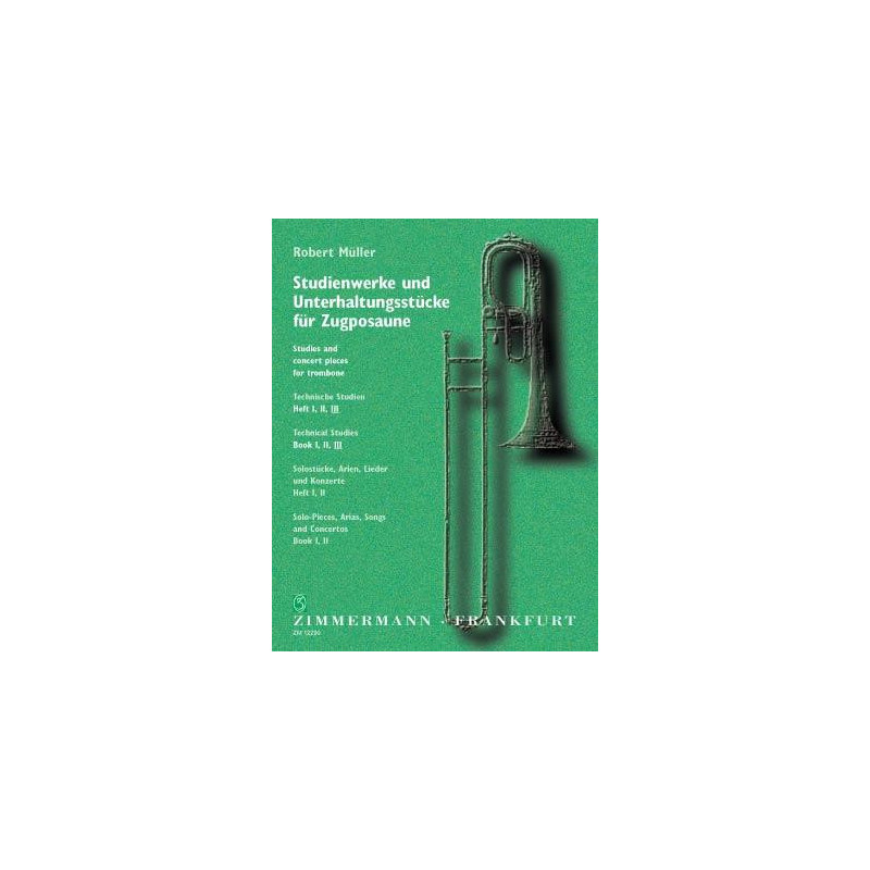 Dans ses études techniques pour trombone, Robert Müller (1849-1909) traite en détail de l'étude des gammes et des accords à travers toutes les touches. De nombreuses générations de trombonistes, dont des musiciens célèbres, en ont profité. Dans le troisième volume, l'auteur utilise les problèmes précédemment traités dans des études techniques individuelles pour des études mixtes dans les clés les plus courantes. En plus de la clé de fa, il utilise également la clé d'alto et de ténor.