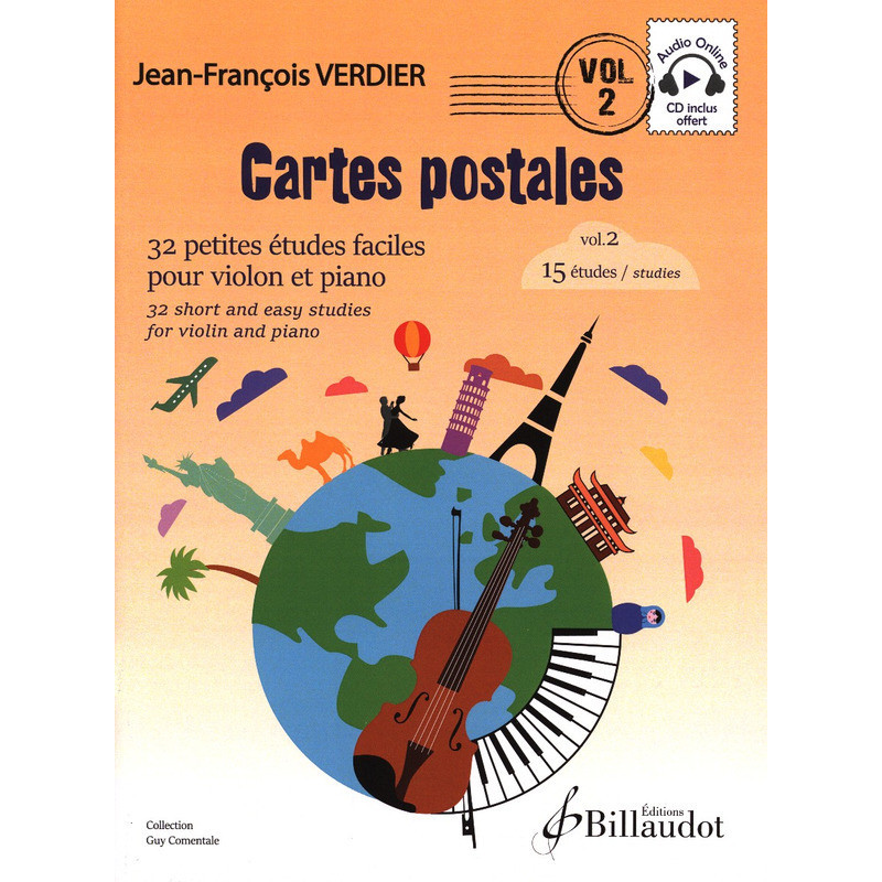 En 32 Cartes postales réparties en 2 recueils, Jean-françois Verdier nous invite à un voyage autour du monde en parcourant de nombreux styles musicaux, caractéristiques des pays évoqués au fil des pages de ses compositions pour violon et piano.