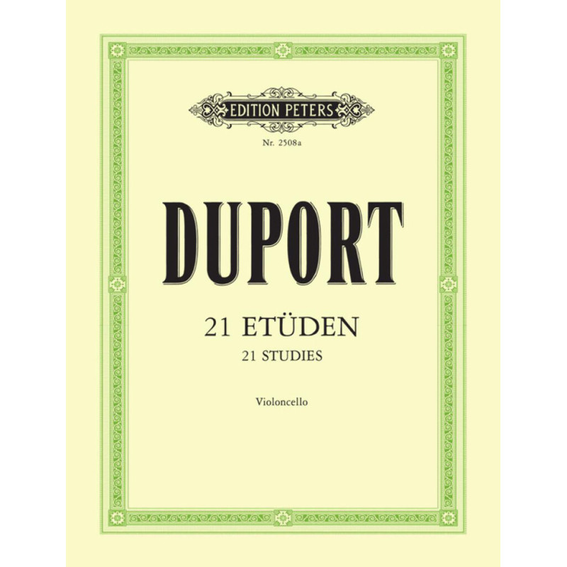 Né à Paris en 1749, Jean Louis Duport , Violoncelliste et compositeur, dit aussi « le jeune » pour le distinguer de son frère aîné Jean Pierre (1741-1818), dit « l'ainé » est aujourd'hui considéré comme l'un des les figures les plus importantes de l'histoire du développement et de l'évolution de la technique du violoncelle. Cet ouvrage contient 21 des uvres et études les plus populaires de « Le Jeune » .