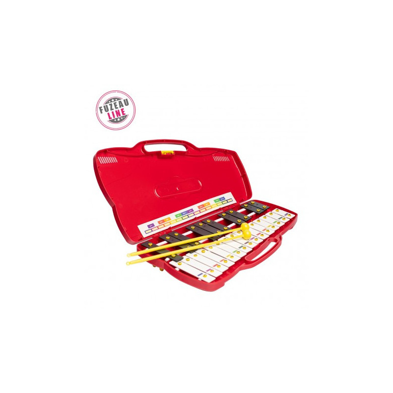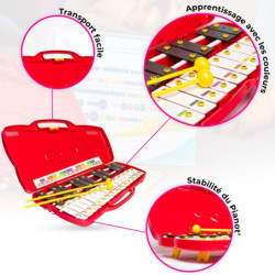 ACCESSOIRES, ASTUCES : Une paire de mailloches est fournie ainsi qu'une planche de gommettes colorées pour un apprentissage simple avec un codage couleur ; les pieds pliables situés sous l'instrument assurent une stabilité et une amplification du son.