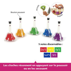 Elles font entendre chacune une note de musique. Leurs couleurs permettent de reconnaître très facilement la gamme et de jouer une mélodie. Elles sont accordées au plus juste et offrent une très grande qualité sonore.