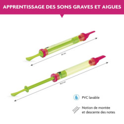 Très ludique, cet instrument à vent facile à manipuler permet d'expérimenter la notion de montée et de descente des notes tout en créant des sonorités insolites.