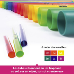 Les Boomwhackers, aussi appelés tubes à son permettent de multiples exploitations pédagogiques et conviennent parfaitement pour le jeu instrumental collectif.