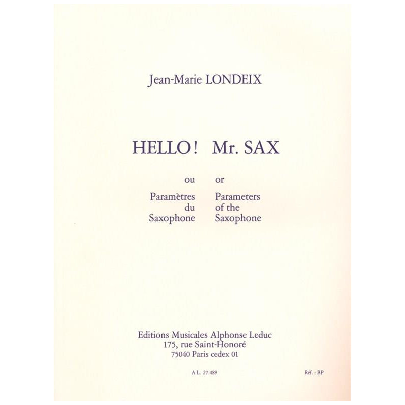 Hello Mr Sax ! Les paramètre du saxophone