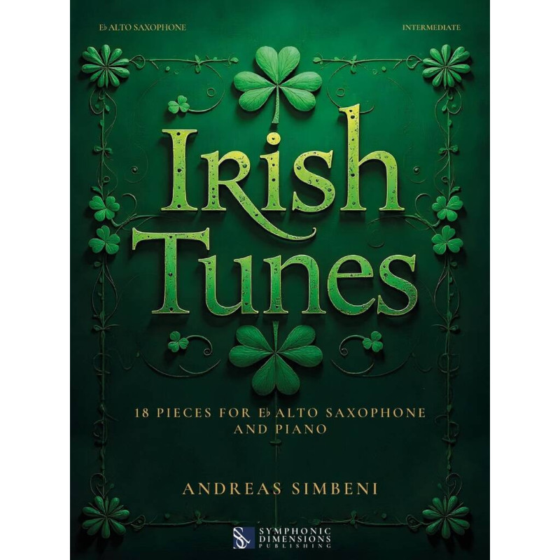 IRISH TUNES une nouvelle collection de 18 mélodies irlandaises traditionnelles, arrangées par Andreas Simbeni pour instrument soliste et piano. Disponible pour flûte, clarinette et saxophone alto. Pour encore plus de flexibilité, l'accompagnement au piano est également disponible en play-along via un QR code idéal pour s'entraîner et jouer !