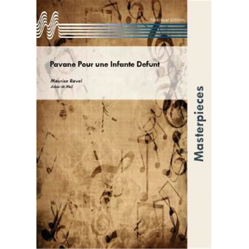 Pavane pour une Infante Défunte (pour une princesse espagnole) était écrite en 1899 pour piano par Maurice Ravel, qui avait 24 ans à lépoque. Ravel écrivait en 1910 une version pour orchestre symphonique. Cette popularité devenait même une source dagacement pour Ravel, qui trouvait ses compositions écrites plus tard bien meilleures mais quand-même moins populaires. Dans cet arrangement par Joan de Meij on entend bien pourquoi la Pavane est tellement aimée par le public.