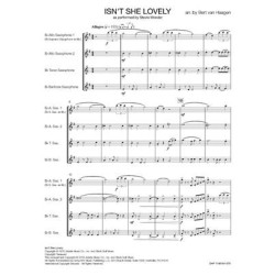 « Isn't She Lovely » est une chanson de Stevie Wonder tirée dun album sorti en 1976, Songs in the Key of Life. Les paroles célèbrent la naissance de sa fille, Aisha Morris. Bert van Haagen a élaboré un arrangement facile pour quatuor de saxophones de cette très belle chanson.