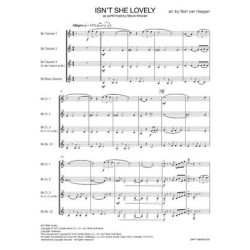 « Isn't She Lovely » est une chanson de Stevie Wonder tirée dun album sorti en 1976, Songs in the Key of Life. Les paroles célèbrent la naissance de sa fille, Aisha Morris. Bert van Haagen a élaboré un arrangement facile pour quatuor de clarinette de cette très belle chanson.