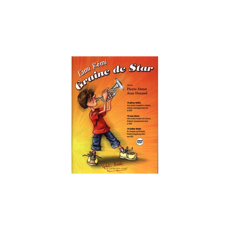 14 pièces faciles avec versions trompette et orchestre, orchestre accompagnement seul ou DVD.