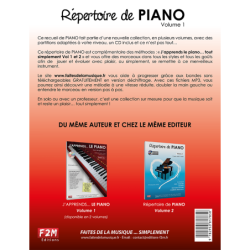 Ce répertoire de PIANO est complémentaire des méthodes : « J'apprends le piano tout simplement Vol 1 » et vous offre des morceaux dans tous les styles et tous les goûts afin de jouer et évoluer avec plaisir, ou simplement, se remettre à ce merveilleux instrument.