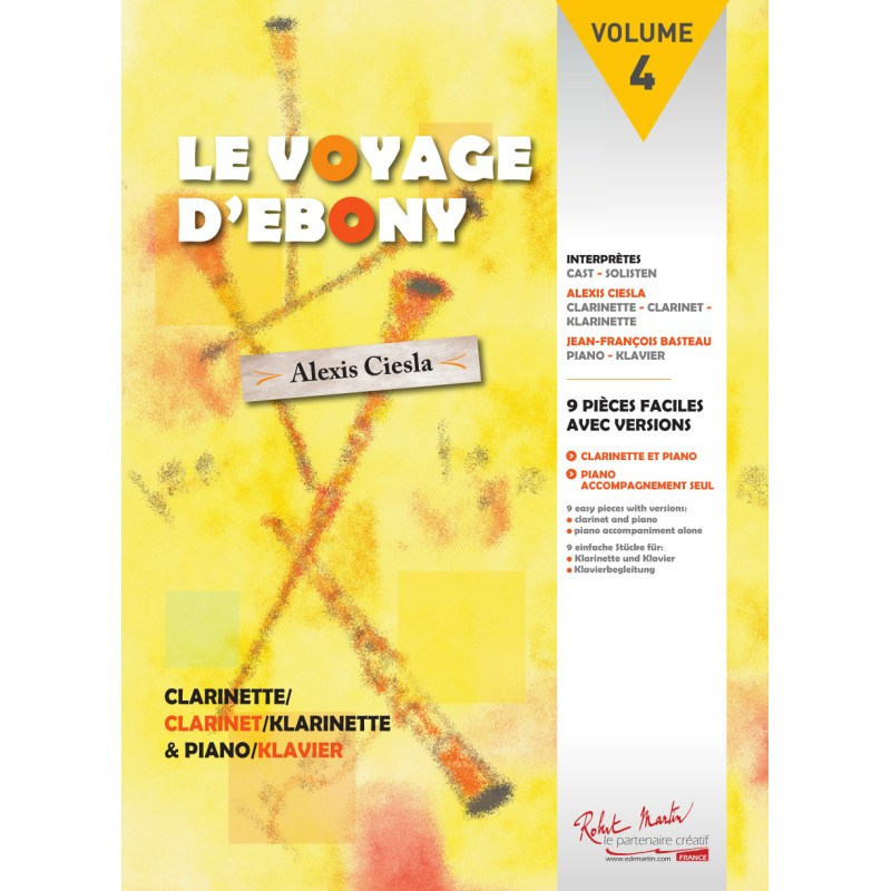 Ce recueil de la collection « Ebony » sadresse principalement aux clarinettistes de fin de premier cycle. Il propose un voyage coloré à destination de la Russie, la Pologne, le Japon, la Chine, lAfrique du Sud, la Louisiane, lArgentinetoute une suite détapes privilégiant une donnée fondamentale : la musicalité. Merci aux compositeurs davoir joué avec moi à ce jeu de pistes ! Jespère que jeunes clarinettistes et professeurs auront autant de plaisir à découvrir et à interpréter ces pièces que jen ai eu à les enregistrer avec le pianiste Jean-François Basteau.