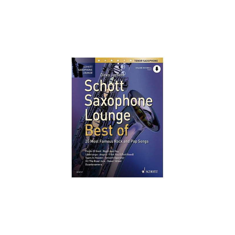 Ce volume réunit les plus beaux titres de dix ans de Schott Saxophone Lounge avec Dirko Juchem : des classiques poétiques comme Fields Of Gold ou Imagine rencontrent des hits du saxophone façon Baker Street et La Panthère rose. Les aspects qui tiennent à cur à Juchem et des mélodies célèbres de la pop et du rock sont mis en valeur grâce à des arrangements faciles à jouer pour saxophone alto ou ténor. Les versions complètes et en play-along sont téléchargeables gratuitement au format MP3.