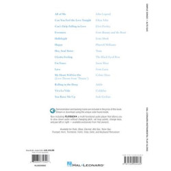 Des arrangements solo de 14 mélodies bien connues sont présentés dans cette collection pour les instrumentistes débutants. Il dispose dun accès en ligne à des pistes de démonstration audio pour le téléchargement ou le streaming pour vous aider à entendre comment la chanson devrait sonner et ainsi vous pouvez sonner grand tout en jouant avec les pistes de support! Les chansons incluent : All of Me Evermore Hallelujah Happy I Gotta Feeling Im Yours Lava Rolling in the Deep Viva la Vida You Raise Me Up et plus encore. Laudio est accessible en ligne en utilisant le code unique à lintérieur de chaque livre et peut être diffusé en continu ou téléchargé. Les fichiers audio comprennent PLAYBACK+, un lecteur audio multifonctionnel qui vous permet de ralentir laudio sans changer de hauteur, définir les points de boucle, changer les touches et tourner vers la gauche ou la droite.