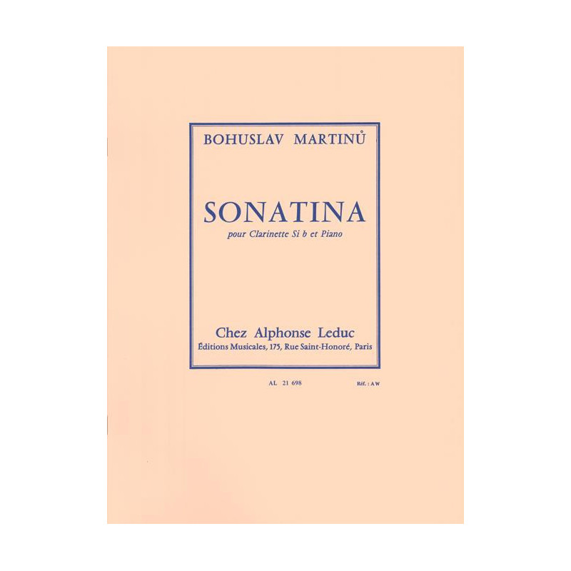 Composée en 1956 par Bohuslav Martinu, la Sonatine pour clarinette si bémol et piano est une pièce néo-classique. Cette uvre, à jouer en un seul mouvement, a été écrite en trois sections différentes : Moderato, Andante et Poco Allegro. Les rythmes rappellent une polka et une marche et la pièce contient une syncope inattendue. Étant l'une des dernières uvres de Bohuslav Martinu, elle a été écrite à New York, après avoir passé quelque temps à Paris. Bohuslav Martinu (1890-1959) était un compositeur et violoniste tchèque. Même s'il s'intéresse à différents styles, dont le romantisme, le jazz et l'expressionnisme, il écrit principalement des pièces néoclassiques, dont 16 symphonies, 14 ballets et 15 opéras.