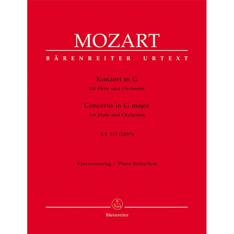 Concerto en sol pour flûte Kv.313 de Mozart en édition Urtext faisant autorité et arrangé avec une réduction pour piano du matériel orchestral original.