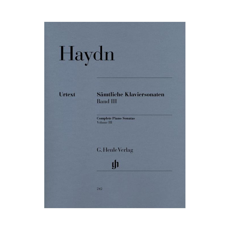 Le volume III contient onze sonates particulièrement belles et importantes. Au moins cinq dentre elles sont en deux mouvements, notamment la sonate en Sol majeur Hob. XVI:40 que les pianistes interprètent avec un plaisir dont ils ne se privent pas. Globalement, les onze mor-ceaux sont tous des chefs-duvre parmi lesquels la sonate en mi mineur Hob. XVI:34, la so-nate en Mi bémol majeur Hob. XVI:49 et une deuxième sonate en Mi bémol majeur Hob. XVI:52 composée en Angleterre méritent peut-être une attention particulière.