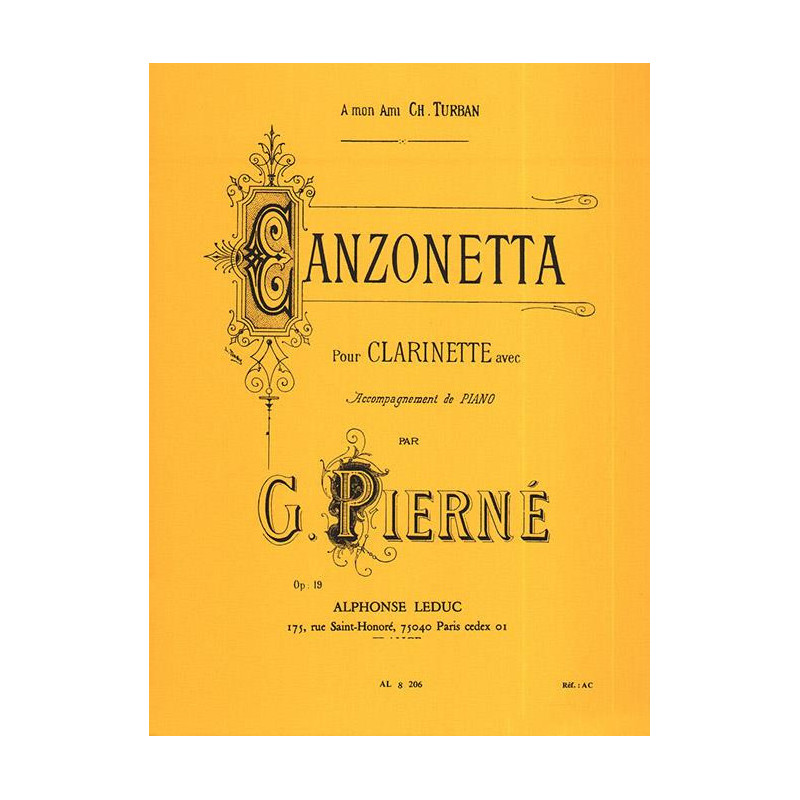 Gabriel Pierné (1863-1937) était un compositeur, chef d'orchestre et organiste français. Bien qu'il soit surtout connu comme chef d'orchestre, son Canzonetta reste une pièce reconnue dans le répertoire des clarinettes. Pierné a étudié au Conservatoire de Paris avant d'occuper le poste de chef d'orchestre pour la série de concerts Concerts Colonne en 1910. Il est resté en poste jusqu'en 1933, et pendant ce temps, il a notamment dirigé la création mondiale de L'Oiseau de feu d'Igor Stravinsky. . Pierné a composé pour une variété d'instruments, Canzonetta pour clarinette avec accompagnement au piano étant l'une des quatre uvres solo du compositeur. Cette pièce Pierné pour clarinette contient de nombreuses caractéristiques typiques du style français, telles que des mélodies lyriques, un nombre important de directions de performance, une floraison de doubles croches, chromaticisme et nombreux changements de dynamique. Canzonetta est une pièce variée, essentielle au répertoire des clarinettistes en herbe.