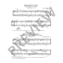 Apprendre des Maîtres : Johann Sebastian Bach a créé dinnombrables pièces à lintention particulière de ses nombreux élèves. Le Petit Livre dAnna Magdalena Bach est un célèbre héritage de cette pratique. Louvrage Mon premier Bach contient beaucoup de ces pièces écrites pour le cours et largement classées par degré croissant de difficulté. À de faciles Chorals ou danses à deux voix succèdent de plus exigeants petits Préludes, Inventions à deux voix, ainsi que le premier Prélude du Clavecin bien tempéré.