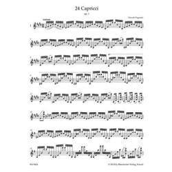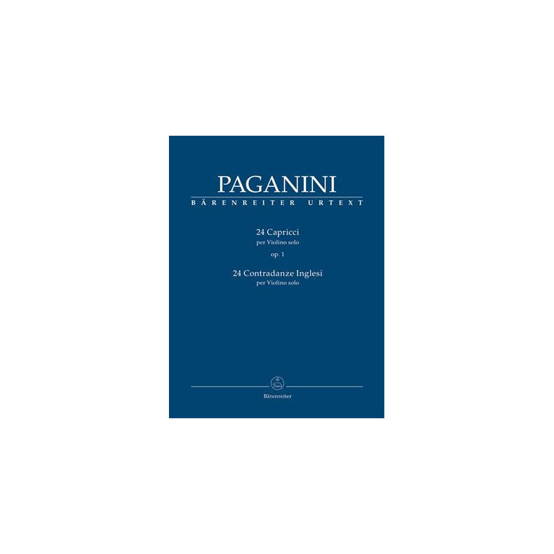 L'édition critique de Bärenreiter est basée sur l'autographe et les premiers tirages de divers éditeurs européens. Le rayonnage et l'articulation d'origine ont été conservés, ce qui distingue cette nouvelle édition des nombreuses publications des 200 dernières années qui ont incorporé des changements et des corrections par de célèbres virtuoses du violon. En plus des redoutables «Caprices», c'est la première fois que les 24 «Contradanze Inglesi» pour violon seul sont publiés. Ces pièces simples mesurent chacune 16 mesures de longueur et exploitent diverses techniques, fournissant ainsi un merveilleux ajout au répertoire de violon solo. Cette édition offre une disposition spacieuse permettant beaucoup d'espace pour ajouter des doigté et des archets personnels.
