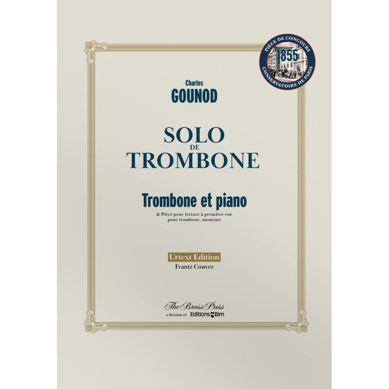Cest le samedi 28 juillet 1855, au Conservatoire de Paris, que le concours de la classe de trombone eut lieu. Cette année-là, une matinée suffit à auditionner tous les candidats pour la raison quexplique Paul Smith, dans la Revue et Gazette musicale: «?Toute la famille des instruments à vent [] sétait donné rendez-vous avec une harpe dans une seule et même matinée. La guerre sest chargée dabréger le concours: beaucoup délèves avaient forcement quitté les classes pour suivre leurs régiments en Crimée. Néanmoins, il en restait encore assez pour que le concours fût honorable.?» Le professeur, Antoine Dieppo, présenta ce jour-là deux étudiants qui furent récompensés: Jean-Baptiste-Frédéric Masset (né en 1828) obtint un premier prix tandis que François-Achille-Alfred Dauger (né en 1825) recueillit un deuxième prix. En plus de lexécution du morceau imposé le Solo de Trombone de Charles Gounod (1818-1893) présentement édité , les élèves étaient également soumis à une épreuve de lecture à vue. En 1855, il sagit dun allegro pour trombone avec accompagnement de violoncelle dun compositeur anonyme, morceau déjà imposé en 1852.