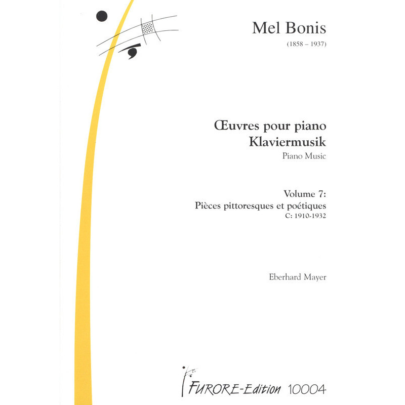 Cinq pièces pour piano à Madeleine Quinet : Quelque 40 ans après « Cinq pièces musicales » aux éditions Durdilly et 30 ans après « Cinq pièces » aux éditions Leduc (voir Pièces pittoresques et poé-tiques A), un nouveau cycle de cinq pièces pour piano des pièces parurent en 1929, cette fois éditées par Maurice Sénart à Paris. Ce sont des pièces courtes et poétiques. Sur la page de titre du manuscrit, Mel Bonis note au crayon : « Cinq petites pièces pour piano (pas très faciles) ». Encore une fois, cet ouvrage est dédié à Made-leine, mais cette fois sous son nom d'épouse : « A Madeleine Quinet ».