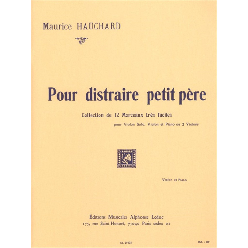 Maurice Hauchard (1870-1957) est un violoniste et compositeur français. En tant que compositeur mineur, souvent dans l'ombre de son contemporain Maurice Ravel, une grande partie de la musique d'Hauchard est méconnue. Cependant, son Pour distraire petit père est une suite charmante, parfaite pour les débutants. En tant qu'excellent musicien polyvalent, Hauchard aimait son art et demeure l'un des plus grands contributeurs à l'éducation musicale. Pour distraire petit père, qui se traduit par « distraire le petit père », est un recueil de douze pièces faciles pour accompagnement de violon et de piano. Chaque mouvement est varié dans le tempo, le temps et les signatures clés, l'articulation et le rythme, ce qui en fait une compilation passionnante pour l'étudiant. Tous les débutants devraient jouer cette suite Hauchard originale pour ses contrastes et sa distinction engageants.