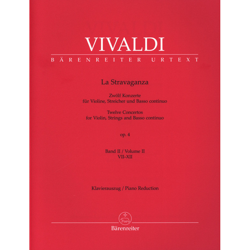 Cette édition de « La Stravaganza » n'est pas seulement la première édition savante-critique, c'est aussi la seule édition complète disponible. En plus des douze concertos transmis dans l'édition Roger, Bärenreiter propose un concerto supplémentaire en partition complète, réduction pour piano et parties contenues dans l'estampe de 1728 publiée par les éditeurs anglais Walsh & Hare, ainsi que des versions alternatives (sans alto) trouvées dans les sources manuscrites des Concertos No. 6 (Volume 1) et No. 11 (Volume 2).
