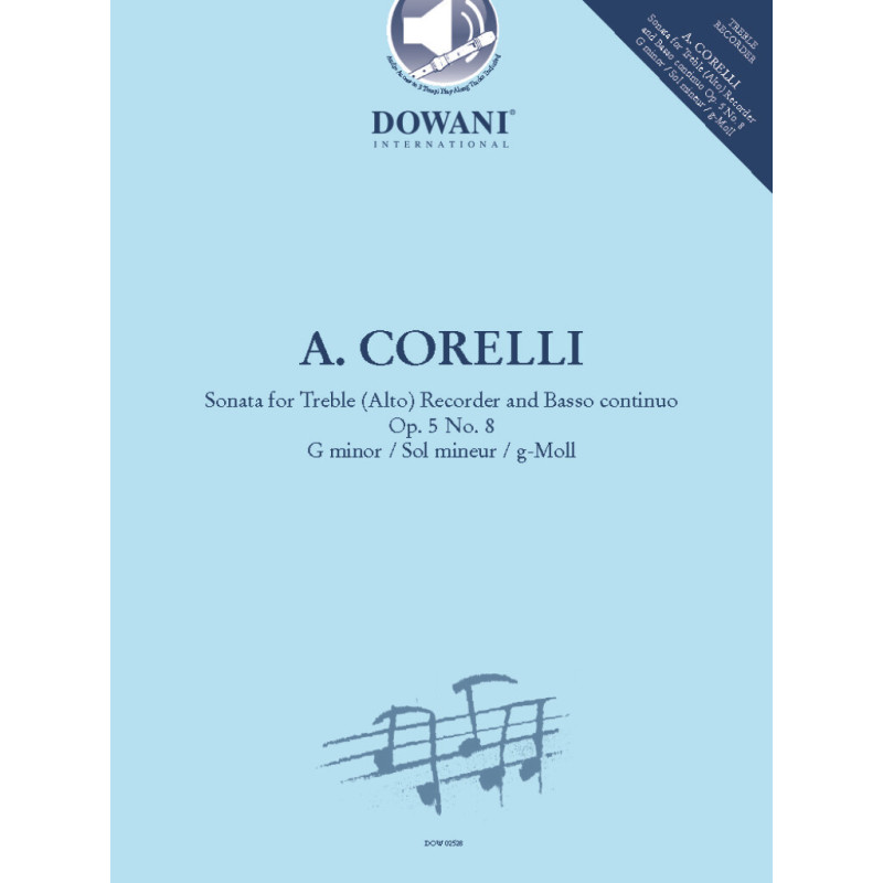 Bien que la sonate op. 5 n° 8 dArcangelo Corelli fût composée à lorigine pour violon, il est idéale pour la flûte à bec lorsque lon la transpose dans une autre tonalité. Manfredo Zimmermann a édité et enregistré la présente sonate pour flûte à bec alto et basse continue en sol mineur.