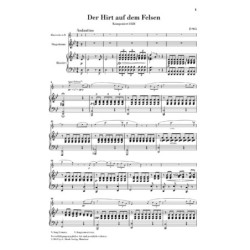 Écrit en 1828, lannée de la mort du compositeur, der Hirt auf dem Felsen (Le Pâtre sur le rocher) était en quelque sorte une commande. En effet, la chanteuse dopéra Anna Milder-Hauptmann, première Léonore dans le Fidelio de Beethoven, avait demandé Schubert, dans des lettres datées des années 1824/1825, de lui composer une grande aria de concert. Ce dernier ne se mit toutefois au travail quà lautomne 1828. Il se basa sur trois poèmes différents quil relia pour en faire une musique la fois brillante et évocatrice. Lapparition de la clarinette, parfois soliste, parfois écho de la voix, confère un charme tout particulier au Pâtre sur le rocher et lui assure, aujourdhui encore, une place de choix dans le répertoire du lied.