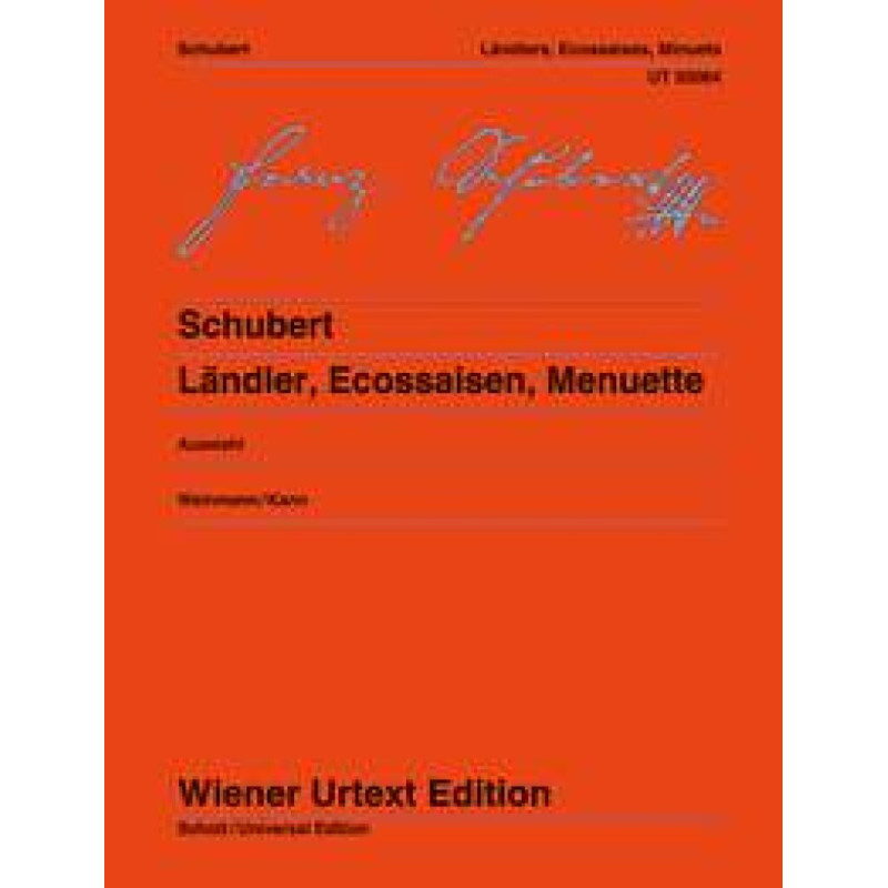 Les deux volumes disponibles (le présent "Ländler, Ecossaisen, Menuette" UT 50064 et celui disponible séparément "Valse et danses allemandes" UT 50063) contiennent les danses les plus belles et les plus populaires, sélectionnées dans le volume qui compte plus de deux fois plus vaste uvre complète de cet adorable genre schubertien. Les danses publiées à l'époque de Schubert ou peu après (comme la Première Valse, la Dernière Valse, Wiener Damen-Ländler ou 20 Menuets, etc.) sont laissées dans leur contexte ; les plus belles des petites formations et des pièces individuelles ont été incluses dans ces deux volumes de sélection.
