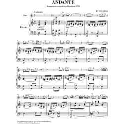 Cette célèbre pièce pour flûte a vraisemblablement été conçue comme alternative au mouvement lent du concerto pour flûte en Sol majeur de Mozart. Dans sa réduction pour piano, lAndante fait maintenant partie intégrante du répertoire pédagogique et domestique pour cet instrument. Ce succès tient certainement en particulier la merveilleuse et ample cantilène de la partie de flûte. En outre, du fait de son faible niveau de difficulté (3), cette dernière est aussi accessible aux élèves flûtistes.