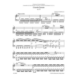 La Grande Sonate en do majeur op. 53 (1803-04) marque son tournant vers des uvres pour piano à grande échelle d'influence symphonique. Depuis sa première parution, cette pièce d'une grande virtuosité, dédiée à l'ami et mécène de Beethoven, Ferdinand, le comte Waldstein, n'a rien perdu de son magnétisme. Cela reste encore aujourdhui un défi pianistique et une référence musicale pour chaque interprète. Jonathan Del Mar, actuellement l'un des spécialistes de Beethoven les plus renommés, propose une édition Urtext méticuleusement éditée sur la base d'une étude approfondie de toutes les sources. Les interprètes peuvent s'attendre à un texte musical basé sur les derniers résultats de la recherche et dont la gravure fine ainsi que les pages tournées pratiques faciliteront l'étude de cette uvre exigeante. Cette édition Urtext comprend une introduction informative et des notes précieuses sur la pratique historique de la performance. Les informations concernant les divergences de sources et les principes éditoriaux sont présentées dans le commentaire critique détaillé qui contient des pages en fac-similé.