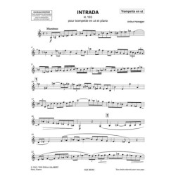 Intrada : demblée, le titre de la pièce pour trompette et piano dArthur Honegger est programmatique. Composée en avril 1947 pour le Concours International dExécution Musicale de Genève, cette uvre fait référence aux intradae, qui fonctionnaient comme des ouvertures, écrites pour les cuivres aux XVIe et XVIIe siècles. Lutilisation par Honegger des modes pentatoniques tout au long de luvre est également remarquable et crée une unité stylistique immédiatement reconnaissable. Introduction et notes dinterprétation en français et en anglais par André Feydy. - Nouvelle gravure.